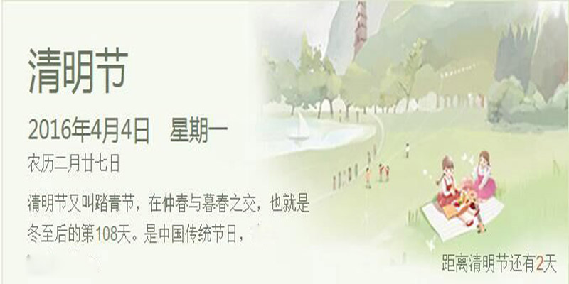 清明節(jié)即將來(lái)臨,根據(jù)國(guó)務(wù)院辦公廳關(guān)于2016年節(jié)假日放假安排,結(jié)合我司實(shí)際情況現(xiàn)將清明節(jié)放假安排如下: 放假共計(jì)2天,4月3日至4月4日,4月5日(星期二)正常上班。給您帶來(lái)的不便,敬請(qǐng)諒解! 若有緊急事務(wù)請(qǐng)聯(lián)系:蒲經(jīng)理(15215047772) 張經(jīng)理(13637756600)