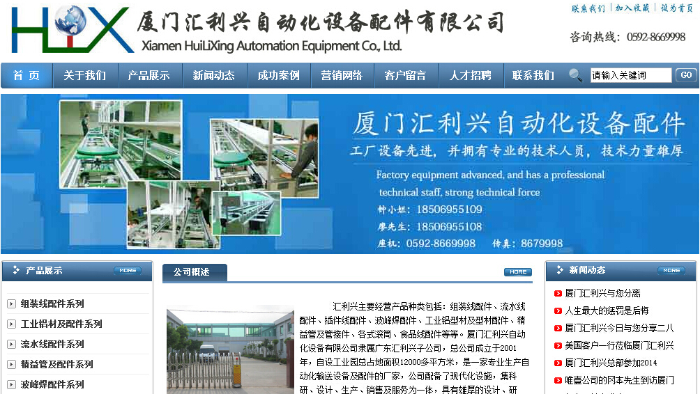 匯利興廈門公司注冊成立,這是匯利興集團公司的里程碑,廈門公司位于同安區(qū)同安建材園48棟105-107號,業(yè)務聯(lián)系方式0592-8669998/8679998 傳真:0592-8679998手機:18506955108廖先生 18506955109 鐘小姐。 匯利興總公司位于廣東東莞,自建匯利興工業(yè)園12000平方,公司目前已相繼在江蘇昆山,廣東深圳,重慶、香港設立分公司。更好的服務、提供優(yōu)質便捷的服務,匯利興一直造福于自動化設備制造廠商、電子設備廠商,各類家用電器生產(chǎn)制造廠家,提供各類別質優(yōu)廉價的生產(chǎn)線配件,整廠自動化生產(chǎn)線。匯利興一直領跑業(yè)界為客戶創(chuàng)造更高的價值,我們站在業(yè)界更高峰,匯利興不同凡響!